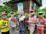 В День празднования Дня Независимости Республики Беларусь учащиеся ГУО "Сметаничская средняя школа" посетили узницу детского концлагеря д. Скобровка Корж М.П. из д. Людвинов. Вместе с педагогом-организатором Борисовец И И. ребята поздравили с праздником Марию Петровну, вручили цветы и сладкий подарок.